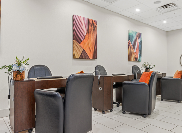 Want to take your manicure to the next level? Visit our Destin-area spa and enjoy our separate nail salon area with four manicure stations along with four curtain-divided pedicure thrones.