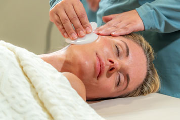 Seaweed eye compresses combined with both relaxing and decongesting lymphatic massage movements to reduce puffiness and dark shadows.